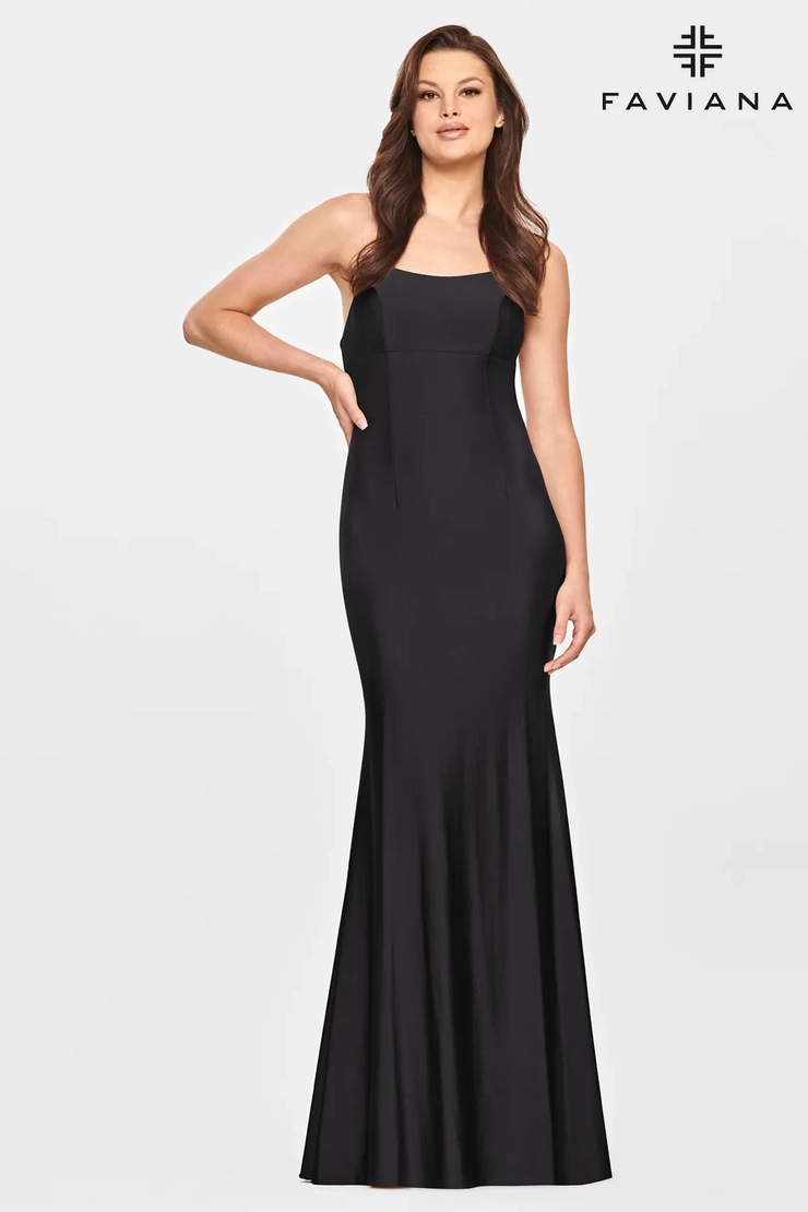 Long Stretch Charmeuse Dress With Scoop Neck And Straps That Cross Along An Open Back. Twist Detail At Lower Back, And Invisible Zipper And Hook And Eye Closure.